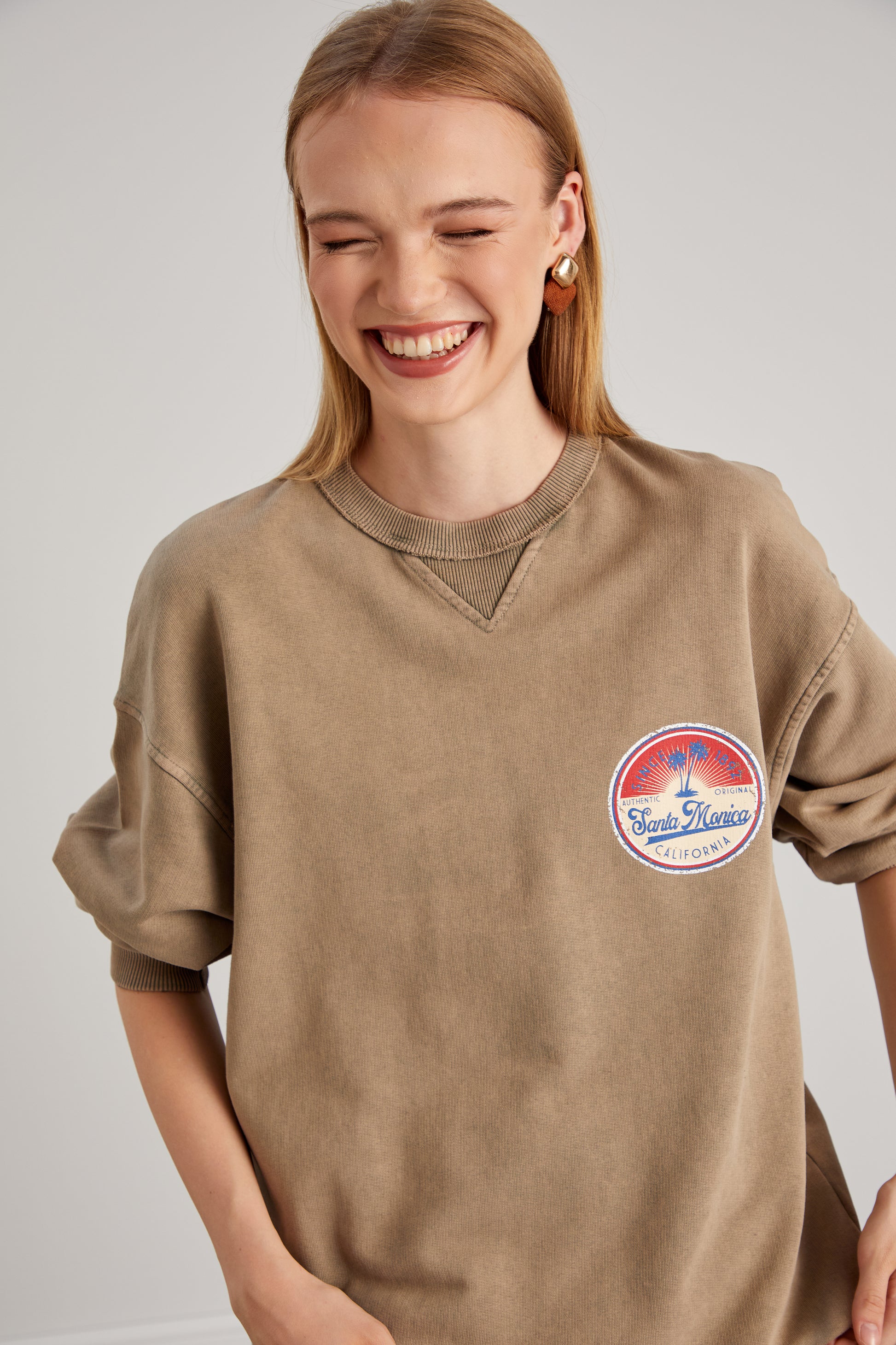 Inspired by west coast ease, this sweatshirt captures the laid-back spirit of Santa Monica with a touch of vintage charm. The washed-out camel tone pairs perfectly with the retro-inspired chest patch, adding character to a minimalist silhouette. Soft, relaxed, and effortlessly cool—this is your go-to piece for slow mornings and golden hour strolls.