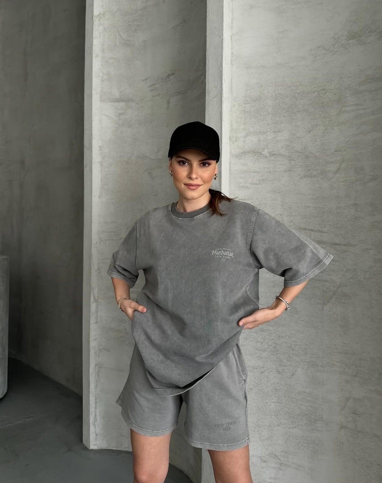 Relaxed and effortlessly cool, this round-neck t-shirt delivers ultimate comfort with its soft, vintage-washed finish. The oversized cut gives it a laid-back edge, perfect for casual days or styled up with accessories. Available in washed brown and grey. One size fits S to XL.