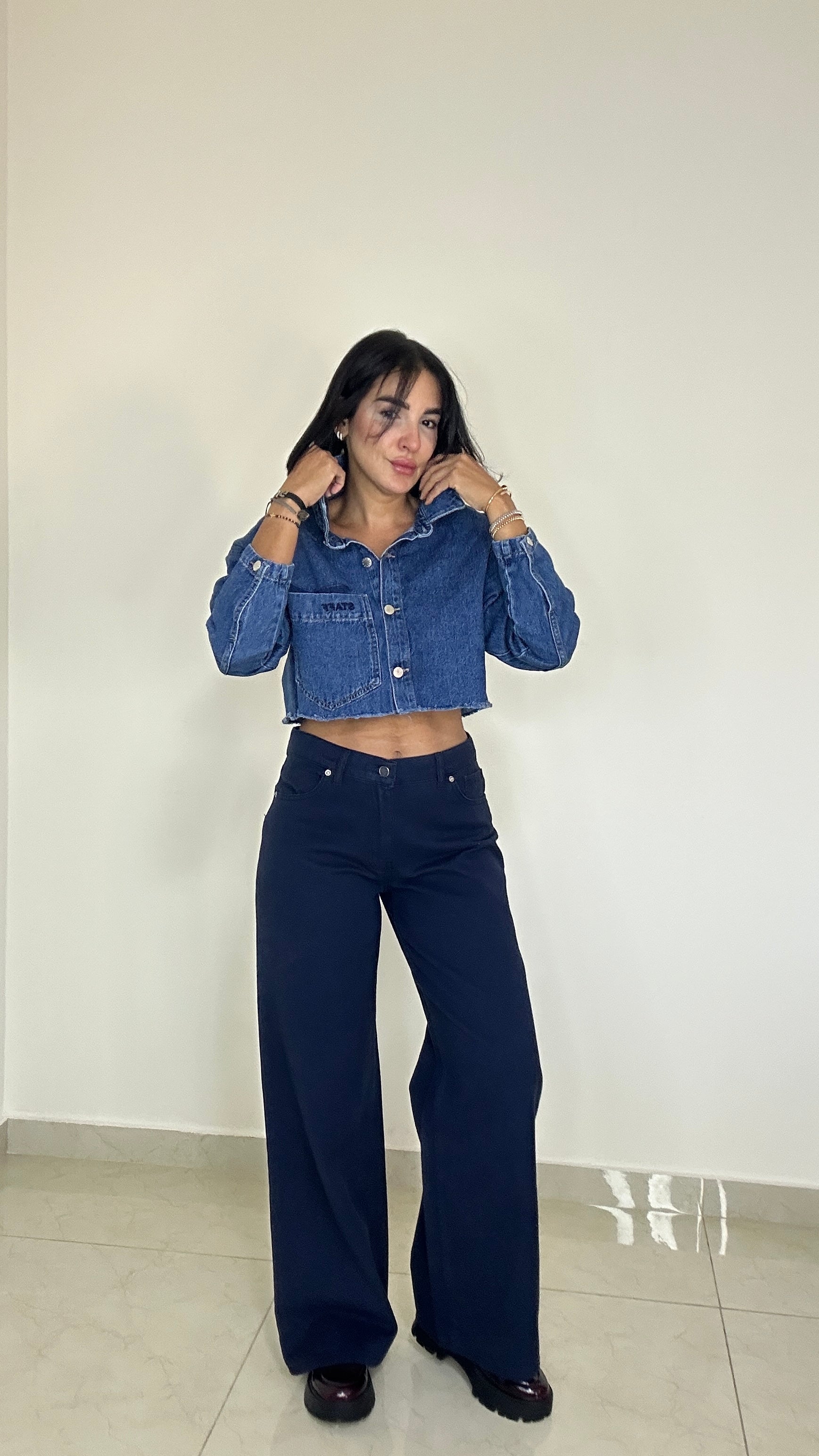 Denim Jeans Straight Cut - NAVY BLUE Color - Mid waist